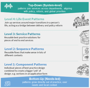 Our group recognized that patterns exist at multiple, interconnected levels and identified four distinct levels where patterns operate in government services.