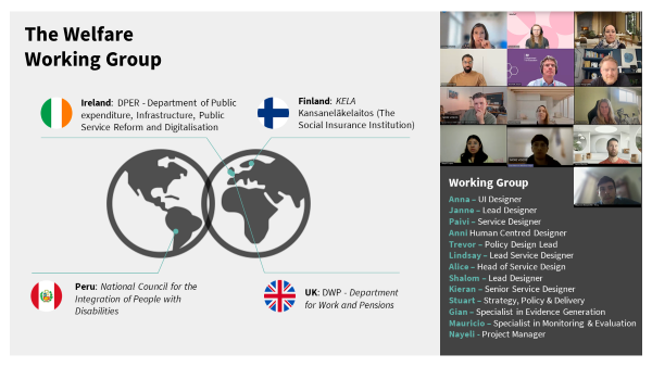 When the call came to collaborate on welfare for the Public Design Conference (part of the World Design Congress Design Safari) in September 2025, Ireland (Department of Public Expenditure and Reform), Finland (Kela), Peru (National Council for Integration of People with Disabilities), and the UK (Department for Work and Pensions) swung into action.